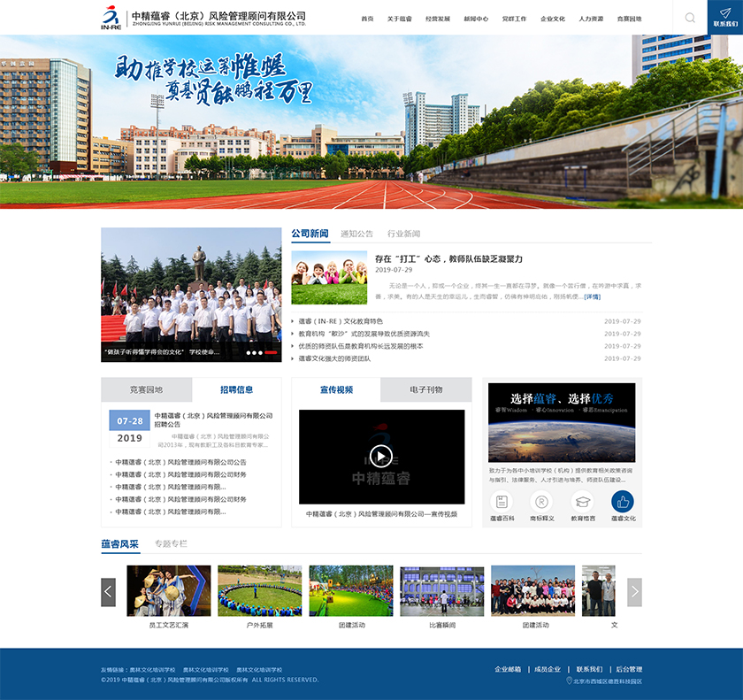 Project Description 中精蕴睿(北京)风险管理顾问有限公司2013年,现有教职工及各科目教育专家80多人,致力于为各中小培训学校(机构) 提供教育相关政策咨询与指引、法律服务、人才引进与培养、师资队伍建设与培训、教学教研与学科创新、市场营销企划、文化 理念塑造与品牌输出的专业化教育管理全方位的综合服务。 Official website address 连云港http://in-re.com/ I want to share